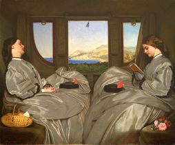Always in poor health, Egg spent his later years in the warmer climate of continental Europe, where he painted Travelling Companions, an ambiguous image of two near-identical young women that has sometimes been interpreted as an attempt to represent two sides of the same person. A member of the circle of friends that included Dickens and Wilkie Collins, Egg features in their surviving correspondence. He participated, as actor and costume designer, in their amateur theatricals, which were often conducted for charitable purposes as noted above. In January 1857 he took a part in Collins's play The Frozen Deep, which starred Dickens and was performed at his home, Tavistock House (Egg played John Want, the ship's cook.) The production was also acted before Queen Victoria and then performed for charity. Dickens described Egg as a "dear gentle little fellow," "always sweet-tempered, humorous, conscientious, thoroughly good, and thoroughly beloved."[3]