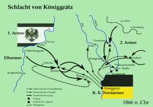1. ^ According to 1867 Austrian military yearbook losses of the North Army were 62,789 قتيل وجريح وفقيد، جيش الجنوب 8,470. Referenced e.g. in Světozor, August 30, 1867
