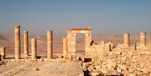 A wall was built around the later town, including a large area of man-made caves, some of which were partially inhabited in the Byzantine period. Under Byzantine rule, in 5th and 6th century, a citadel and a monastery with two churches were built on the acropolis of Avdat. Saint Theodore's Church is the most interesting Byzantine relic in Avdat. Marble tombstones inserted in the floor are covered with Greek inscriptions. St. Theodore was a Greek martyr of the 4th century. The Monastery stands next to the church and nearby a lintel is carved with lions and it marks the entrance to the castle.