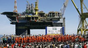 الرئيس البرازيلي السابق لولا دا سيلڤا مع الفريق المسئول عن اكتشافات النفط والغاز في حقل توپي للنفط.