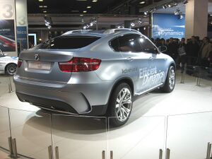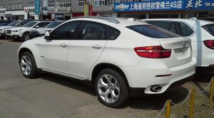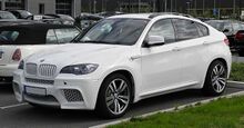 بي إم دبليو إكس6 (إنگليزية: BMW X6)، is a mid-size luxury crossover SUV by German automaker BMW. The BMW X6 is the originator of the sports activity coupé (SAC), referencing its sloping rear roof design. It combines the attributes of an SUV (high ground clearance, all-wheel drive and all-weather ability, large wheels and tires) with the stance of a coupé (styling featuring a sloping roof). It is built in BMW's North American plant in Greer, South Carolina alongside the BMW X5, whose platform it shares. Prior to the release of the X7, the X6 was considered a flagship SUV for BMW.