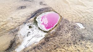 هناك بحيرة وردية في الصين ما يميزها ليس فقط اللون الوردي المذهل، ولكنها أيضا مخفية في صحراء باداين جاران الواقعة في منطقة منغوليا الداخلية شمال الصين!البحيرة الوردية هي بحيرة تمتاز باللون الأحمر أو الوردي الذي يرجع إلى وجود طحالب تنتج كارتنويدات، مثل الطحلب البحري الدقيق (Dunaliella salina).