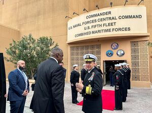 وزير الدفاع الأمريكي لويد أوستن في مقر قيادة الأسطول الخامس الأمريكي في العاصمة البحرينية المنامة، ديسمبر 2023.