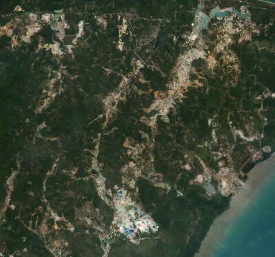 صورة ساتلية تبين ندوب تعدين القصدير في جزيرة بانكا، إندونيسيا.