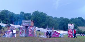 Banksy's Stonehenge from portable toilets at the Glastonbury Festival, June 2007