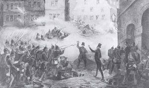 متاريس أقامها الثوار أثناء انتفاضة مايو في درسدن.