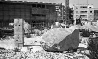 حجر ساقط من حائط المبكى تم إحضاره إلى مجمع بيت الرئيس أثناء بنائه، 1969