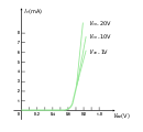 The collector–emitter current can be viewed as being controlled by the base–emitter current (current control), or by the base–emitter voltage (voltage control). These views are related by the current–voltage relation of the base–emitter junction, which is the usual exponential current–voltage curve of a p–n junction (diode).[3]