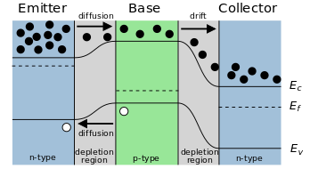 - ^ General Electric (1962). Transistor Manual (6th ed.). p. 12. Bibcode:1964trma.book.....C. "If the principle of space charge neutrality is used in the analysis of the transistor, it is evident that the collector current is controlled by means of the positive charge (hole concentration) in the base region. ... When a transistor is used at higher frequencies, the fundamental limitation is the time it takes the carriers to diffuse across the base region..." (same in 4th and 5th editions).