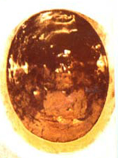 صورة مقربة للحجر الأسود والذي يبدو أشبه بالمعادن نتيجة الطبقة الشمعية التي وضعت عليه