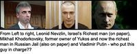 في آخر عام 1991، انهار الاتحاد السوڤيتي، وقام بوريس يلتسن بعملية خصخصة واسعة النطاق، وزع بمقتضاها أسهم كل الشركات على الشعب في روسيا. وبرز عدد من الشباب الروسي مسلحين بأموال قليلة (مجهولة المصدر) وقاموا بشراء أسهم الشركات المخصخصة بأسعار زهيدة جداً. وفي أقل من عامين أصبح أولئك الشباب مليارديرات يتحكمون في مفاصل الاقتصاد الروسي. وصار يُطلق عليهم لقب "الأوليگارك"، أي القِلة المتحكمة. طرق حصول أولئك الشباب على التمويل الذي مكنهم من شراء الأسهم من عامة الشعب يشوبها غموض كبير حتى اليوم. ويُتهم البعض باعتماده على المافيا الروسية والبعض الآخر على تمويل خارجي. وبوصول ڤلاديمير پوتن للحكم بدأ تصنيف الأوليگارك إلى وطنيين وعملاء للخارج (مثل كبيرهم ميخائيل خودوركوڤسكي الذي حاول تهريب أوراق ملكيته لعملاق النفط يوكوس إلى إسرائيل ).
