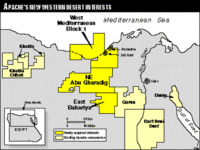 شهد النصف الثاني من الثمانينيات في مصر انتهاء امتيازات الخمسين سنة لاستخراج البترول في مصر التي كانت قد مُنحت في الثلاثينيات. وكان الكثير من تلك الحقول محتفظاً ببعض النفط. فظهرت فرصة أمام النظام المصري للتربح الشخصي من خلال ترسية امتيازات نفس الحقول القديمة على شركات جديدة، معظمها غير قادر إلا على الضخ بدون دراية. وهي الفترة التي شهدت حصول لاعبي كرة قدم وراقصة ومخرج تلفزيوني على بعض تلك الامتيازات. وبرزت بين تلك الشركات "شركة فينكس ريسورسز"، وهي شركة نفط سابقة، توقفت عن النشاط لعشرين سنة. ومقرها مدينة بولدر، كولورادو. قامت شركة أوفشور بشراء اسم الشركة الخامدة، وعيّن مصري أمريكي ليرأس مجلس ادارتها. وبقدرة قادر حصلت تلك الشركة على العديد من امتيازات انتاج النفط من حقول قديمة في مصر. العقود المصرية جعلت للشركة قيمة كبيرة، فاشترتها شركة سي گل للنفط والغاز مقابل حصة كبيرة في أسهم سي جل. وتكررت اللعبة فحلت سي گل على المزيد من الامتيازات في مصر، مما أغرى شركة أپاتشي بشرائها مقابل حصة كبيرة في أسهم أپاتشي. وبالتالي أصحب الشريك المصري النافذ والمجهول شريكاً في أپاتشي للنفط. وتوسعت عمليات أپاتشي في مصر حتى أضحت أكبر شركة نفط في مصر.