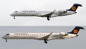 The Bombardier CRJ700, CRJ900, and CRJ1000 are a family of regional jet airliners designed and manufactured by Canadian transportation conglomerate Bombardier and is part of the Bombardier CRJ aircraft family; this aircraft trio has been collectively marketed by the company as the CRJ Series.[4] Their design was derived from the smaller CRJ100 and 200 airliners.