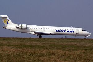 Design work on the CRJ700 by Bombardier started in 1995 and the program was officially launched in January 1997.[26] The CRJ700 is a stretched derivative of the CRJ200. The CRJ700 features a new wing with leading edge slats and a stretched and slightly widened fuselage, with a lowered floor. Its first flight took place on 27 May 1999.[26] The aircraft's FAA Type Certificate designation is the CL-600-2C10.[60] The CRJ700 first entered commercial service with Brit Air in 2001.[26]