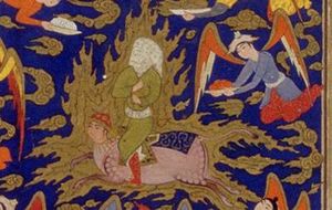 مخطوطة فارسية تعود للنصف الثاني من القرن السادس عشر تصور صعود النبي محمد للسماء وقد غطي وجهه وهو راكب على البراق أثناء حادثة الإسراء والمعراج ويظهر على الجزء الأيمن جبريل وهو ووفقاً للعقيدة الإسلامية الملاك الذي رافق النبي في رحلته من مكة إلى القدس خلال نفس الحادثة. تظهر المخطوطة بألوان مائية غير نافذة وقد استخدم الذهب في رسمها، المخطوطة موجودة الآن ضمن مجموعة متحف الفنون الجميلة في سان فرانسيسكو.