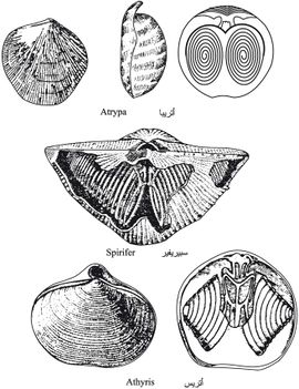 أمّا عضديات الأرجل المتمفصلة، التي تنوعت وازداد عدد أفرادها بدءاً من الدور الأوردوفيشي حتى العصر الحالي؛ فكانت ممثلة في الدور الكمبري بأشكال متخصصة متعددة. فمن رتبها: رتبة أورتيدا Orthida التي ازدهرت في الدورين الكمبري والأوردوفيشي ازدهاراً كبيراً، وتناقصت أعدادها بعد ذلك وانقرضت في الدور البرمي (قبل 280 ـ 225 مليون سنة)، ومنها الجنس أورتيس Orthis (الشكل5)، ورتبة ستروفومنيدا Strophomenida التي ظهرت في بداية الدور الأوردوفيشي وازداد عدد أفرادها زيادة كبيرة في الدور البرمي، ولكنها تقهقرت سريعاً في نهاية هذا الدور، يُذكر منها الجنس ستروفومنا Strophomena (الشكل 6). أمّا رتبة سبيريفريدا Spiriferida، التي تتميّز بجهاز عضدي (براكيديوم) مخروطي الشكل؛ فقد ظهرت في الدور الأوردوفيشي وانتشرت في الدور البرمي حتى الجوراسي (قبل 190 مليون سنة)، ويُذكر منها الجنس سبيريفر Spirifer (الشكل 7). وأمّا أعداد أفراد رتبة رنكونلّيدا Rhynchonellida فكانت غزيرة بدءاً من الدور الأوردوفيشي الأوسط وفي حقب الباليوزوي كلها، وبقيت أفرادها على قيد الحياة في الدور الترياسي (225ـ 190 مليون سنة) قبل أن يتجدّد وجودها في الجوراسي، وقد تضاءل عدد أفرادها في الحقب الحديث (الكينوزوي) حتى أصبح عدد أجناسها لايتعدّى أربعة عشر جنساً في العصر الحالي، والرتبة التي تشكل اليوم المجموعة المهيمنة في البحار هي رتبة تربراتوليدا Terebratulida، يذكر من أجناسها الجنس تريبراتولا Terebratula (الشكل 4)، وقد ظهرت في الدور الديفوني المبكّر وانتشرت أفرادها بعد ذلك في الديفوني الأوسط لإنتاج أشكال عملاقة، واستمرت أفراد هذه الرتبة في الدور البرمي، واجتازت الحدود الفاصلة بين الحقب القديم (الباليوزوي) والحقب المتوسط (المزوزوي) إذ انتشرت أفرادها انتشاراً كبيراً في الدور الترياسي، وتنوَّعت في الدور الجوراسي، تناقصت أعدادها في الدور الكريتاسي المتأخّر (ما قبل 75 مليون سنة) وتابعت أعدادها بالتناقص حتى العصر الحالي.