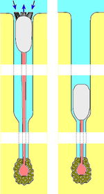 Long, burrows | Short, attached to hard surfaces | None, cemented to surface | Short, attached to hard surfaces[6] | ||