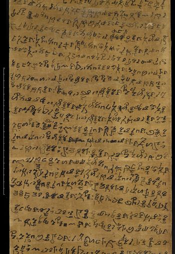Early theories proposed a pictographic-acrophonic origin for the Brahmi script, on the model of the Egyptian hieroglyphic script. These ideas however have lost credence, as they are "purely imaginative and speculative".[24] Similar ideas have tried to connect the Brahmi script with the Indus script, but they remain unproven, and particularly suffer from the fact that the Indus script is as yet undeciphered.[24]