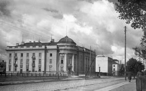 The city was developed significantly and a number of representative public buildings were erected in Neoclassical and Modernist styles, especially at Ulica Unii Lubelskiej (Union of Lublin Street, now Lenin Street), including the Bank of Poland, Tax Chamber, Regional Chamber of the State Control, Healthcare Fund and Voivodeship Office.[26] Other notable projects include the officials' housing estate, stylistically inspired by historic manor houses of Polish nobility and the garden city movement, and the Warburg Residential Colony, dedicated to poor Jews who had lost their homes in World War I, founded by Felix M. Warburg, chairman of the Joint Distribution Committee of American Funds for Jewish War Sufferers.[27] In 1929, city limits were greatly expanded.[28][29]
