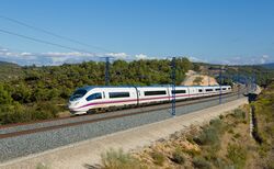 The Renfe Class 103 is a Siemens Velaro high speed train in service in Spain similar to that proposed for Brightline West.