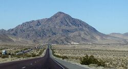 Interstate 15 approaching Cave Mountain, California (above) and in the Ivanpah Valley, Nevada (below). The line is planned to run in the highway median strip for most of its length.