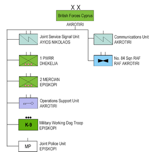 • Cyprus Communications Unit (an amalgamation of 12 Signals Unit RAF at Episkopi (1 June 1969 - 1 Sept 2002[12]) & 259 Signal Squadron, Royal Signals)