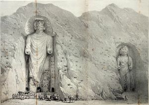 تماثيل بوذا في باميان فارسية: تندیس‌های بودا در بامیان هُما تِمثالان أثريان ضخمان منحوتان على منحدرات وادي باميان في منطقة هزارستان في وسط أفغانستان، على بُعد 230 كم (140 ميل) شمال غرب العاصمة كابول. يعود تاريخ بِنائها إلى القرن السادس الميلادي،[1] حيث بُني التمثال الأصغر سنة 507 ميلادي والأكبر 554 ميلادي.[1] عندما كانت منطقة باميان مركز تجارة بوذياً وهي مثال على الفن الهندو-أغريقي الكلاسيكي في تلك الحقبة. وتعتبر المنطقة جزءاً من ما يعرف بممر الحير أو طريق الحرير التاريخي. وعبر القرون عانى التمثالان من دمار شديد لكن حركة طالبان هي التي اجهزت عليهما. قامت عناصر طالبان بتدمير التمثالين باستخدام الديناميت في مارس 2001. ويعتبر الموقع أحد مواقع اليونسكو للتراث العالمي منذ عام 2003.