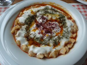 Kayseri is renowned for its culinary specialities such as mantı, pastırma and sucuk. Mantı is the most popular dish in Kayseri for the local people and tourists. Another speciality is stuffed zucchini flowers made with Köfte, garlic and spices. Nevzine is a traditional dessert.