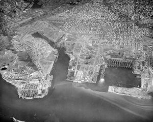 United States Navy's main marine bases were located in the deepwater ports of: San Diego Bay, Port of Los Angeles, San Francisco Bay and the Stockton Deepwater Shipping Channel. The US Navy during WW2 Pacific Fleet operated: ports, supply depots and airfields for aircraft carrier training, also blimps used for patrol of the coast. Post World War II many shipyards became home of the Pacific Reserve Fleet used to store the many surplus ships.[141]