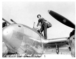 WASP pilot Ruth Dailey climbs into a Lockheed P-38 Lightning