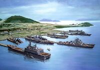 Historically, the bay has been significant from a military standpoint. The French used it as a naval base for their forces in Indochina. It was also used as a staging area for the 40-ship Imperial Russian fleet under Admiral Zinovy Rozhestvensky prior to the Battle of Tsushima in 1905,[3] and by the Japanese Imperial Navy in preparation for the invasion of British Malaya and British Borneo (today Malaysia) in 1942. In January 1945 U.S. Naval Task Force 38 destroyed most Japanese facilities in an action called Operation Gratitude,[4] after which the bay was abandoned.