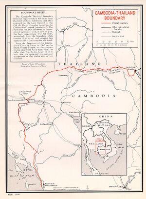 2. ^ أ ب ت ث ج ح خ د ذ ر "International Boundary Study No. 40 – Cambodia – Thailand Boundary (Revised)" (PDF). US Department of State. 23 November 1966. Retrieved 20 September 2020.
