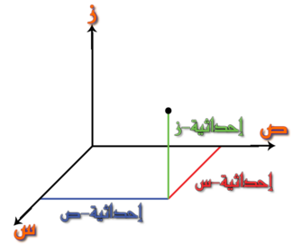 يمكن كذلك استنتاج إحداثيات الس، والص، والز من الأبعاد عن المستوي ص، ز والمستوي س،ز والمستوي س،ص. تبيّن الصورة 5 أبعاد النقطة أ عن المستويات.
