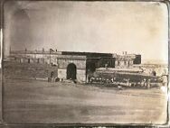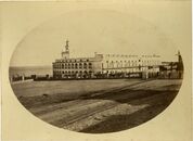 Under the direction of the English architect Edward Taylor, the New Customs House was built in 1855 back-to-back with the rear walls of the Fort, facing the river. It is the first public building of great size built by the young mercantile State of Buenos Aires; its semicircular shape had five floors for depots and fifty-one storage rooms with arched ceilings, surrounded by loggias. From the central tower, which had a clock and a beacon at its top, stretched out a 300 m pier where ships of greater draught could anchor. Goods carts could access the dock via two side ramps carts. It was used for almost forty years, then demolished down to the first floor by the Madero Port project; its foundations are buried under what is today Colón Park.[2]