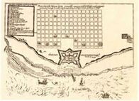 In 1536, Don Pedro de Mendoza established a settlement near the mouth of the Riachuelo de los Navíos, called Nuestra Señora del Buen Ayre. In 1580, Juan de Garay founded the city at the place which was to be the Plaza Mayor (nowadays Plaza de Mayo), naming it Santísima Trinidad while the port retained the name of the original settlement; the "Royal Fort of Don Juan Baltasar de Austria" was built in 1594. It was replaced in 1713 by a more solid construction with turrets, sentry boxes, a moat and a drawbridge that upon being completed in 1720 was given the name of "Castillo San Miguel" (St. Michael's Castle). President Bernardino Rivadavia modified the fort in 1820, and the drawbridge was replaced by a neoclassical portico. The site, which was for defence at that time, and also the seat of the Spanish and Home governments, is where Government House currently stands.[2]