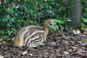 The female does not care for the eggs or the chicks, but rather moves on within her territory to lay eggs in the nests of several other males. Young cassowaries are brown and have buffy stripes. They are often kept as pets in native villages (in New Guinea), where they are permitted to roam like barnyard fowl until nearing maturity. Caged birds are regularly bereft of their fresh plumes.[30]