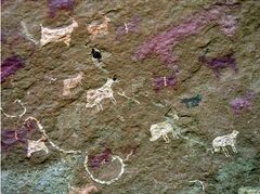 Dhambalin ("half, vertically cut mountain") is an archaeological site in the northwestern Sahil province of Somaliland. The sandstone rock shelter, contains rock art depicting various animals, such as horned cattle and goats, as well as giraffes, an animal no longer found in Somaliland region.[2] The site also features the earliest known pictures of sheep in Somaliland. Discovered in autumn 2007, residents of Beenyo Dhaadheer reported the rock art to the Somali archaeologist Sada Mire, Director of the Department of Archaeology within the Ministry of Tourism and Culture of Somaliland.[3]
