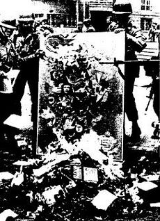 An example of extreme state censorship was the Nazis' requirements of using art as propaganda. Art was only allowed to be used as a political instrument to control people and failure to act in accordance with the censors was punishable by law, even fatal. The Degenerate Art Exhibition was a historical instance of this, the goal of which was to advertise Nazi values and slander others.[31]