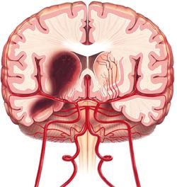 النزف الدماغي «تمزق شريان صغير داخل الدماغ يؤدي إلى خروج الدم من الوعاء إلى النسيج الدماغي».