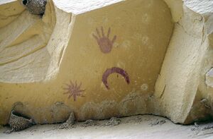 Fajada Butte bears five other petroglyphs—including a carving of a "rattlesnake", other spirals, and a rectangle—that are conspicuously lit by contrasts between sunbeams and shadows during equinoxes or solstices.[88] Public access to the butte was curtailed when, in 1989, erosion from modern foot traffic was found to be responsible for one of the three screening slabs at the "Sun Dagger" site shifting out of its ancient position; the assemblage of stones has thus lost some of its former spatial and temporal precision as a solar and lunar calendar. In 1990 the screens were stabilized and placed under observation, but the wayward slab was not moved back into its original orientation.[89]