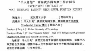 في 28 يناير 2020، أُلقي القبض على تشارلز ليبر، رئيس قسم الكيمياء والبيولوجيا الكيميائية بجامعة هارڤرد، واتهامه جنائياً بتقديم "بيانات كاذبة وهمية ومزورة" إلى وزارة الدفاع الأمريكية حول علاقاته ببرنامج الحكومة الصينية لتجنيد العلماء والباحثين الأجانب.[5] ‏من بين الإتهامات الموجهة للعالم الأمريكي ‎ليبر تأسيس معمل لأبحاث تقنية النانو بدون إعلام جامعة هارڤرد. مكان المعمل: مدينة ووهان الصينية مركز ڤيروس كورونا الجديد