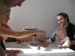 إمرأة شيشانية وطفلها في مركز طبي بالشيشان.