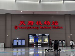 High-speed rail connection as part of the Chengdu–Yibin high-speed railway connecting northerly to Chengdu East railway station, southerly to Zigong, Ziyang, Neijaing and more cities. Tianfu Jichang Station (Tianfu Airport Station), along with the high-speed rail has been in operation since December 2023.