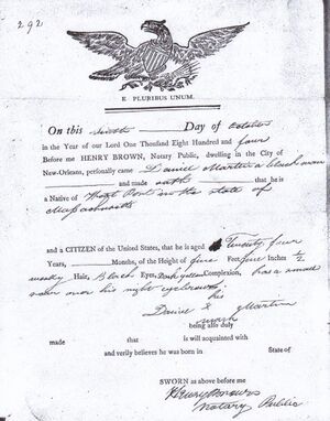 - ^ أ ب Free and enslaved people of African descent were not legally allowed to be American citizens in 1807.