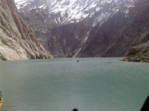 منظر بحيرة عطا آباد، التي تم حولها بناء 24 كيلومتر من سلسلة من الجسور والأنفاق بمساعدة صينية.