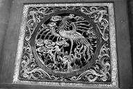 Relief of a fenghuang in Fuxi Temple (Tianshui). They are mythological birds of East Asia that reign over all other birds.