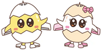 Chitose's mascots are Tamaran (たまらん) and Tamarin (たまりん). They are a fusion of eggs and airplanes to represent the city's dependence on eggs.[7]