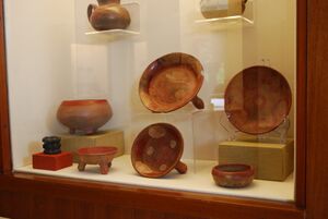 The Cholula Pyramid site museum is located across the street from the north side of the pyramid, separated by the main road that connects Cholula to Puebla.[25] It is a small museum with two halls. The first contains a model cut away to show the various stages of the pyramid's construction. The second hall features finds from the area including clay figures, pots, other containers, and items of stone and shell, along with recreations of the two main murals of the pyramid complex.[14] There is also a small enclosure with reproductions of the two main murals of the pyramid.[3] For many years the museum was a psychiatric hospital run by Catholic brothers before it was converted to a museum.