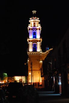 "Concierto para Campanas" (Bell Concert) also called the Vaniloquio is an event when most of the city's thirty seven churches coordinate their ringing to music written by Llorenc Barber especially for the purpose.[27] The concert involves more than 150 bells, rung by 130 people.[3][18] The most important day for this event is 28 November, but it also occurs on the Sunday after Ash Wednesday.[7] Three rockets fired from the center of the city signals the beginning. The city recommends that listeners climb onto a rooftop or the Pyramid or wander the streets to hear the concert best. The concert is proceeded by Aztec dance in the main square, as well as a cheese, bread and wine tasting event.[7][44]