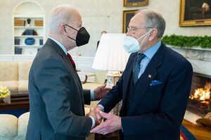In September 2021, Grassley announced his intention to run for an eighth term.[24] His announcement was viewed as advantageous to Republicans seeking to hold Grassley's seat and to retake the Senate majority in 2022.[25] He won the general election, defeating Democratic nominee Michael Franken on November 8, 2022.[26]